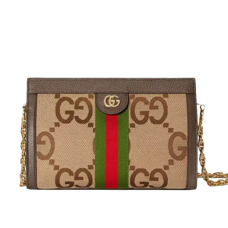 The Ophidia collection evokes the House’s heritage with the signature Web stripe and Double G emblem in light gold-toned finish. The styles are crafted from soft GG Monogram coated fabric, featuring green cotton lining inside.