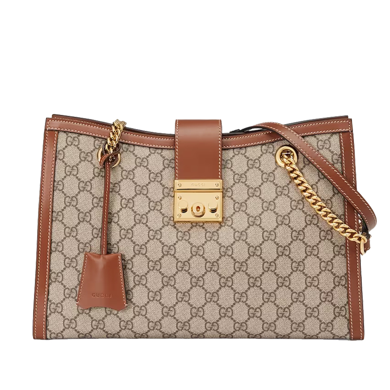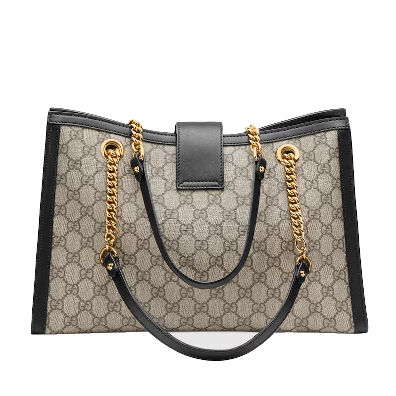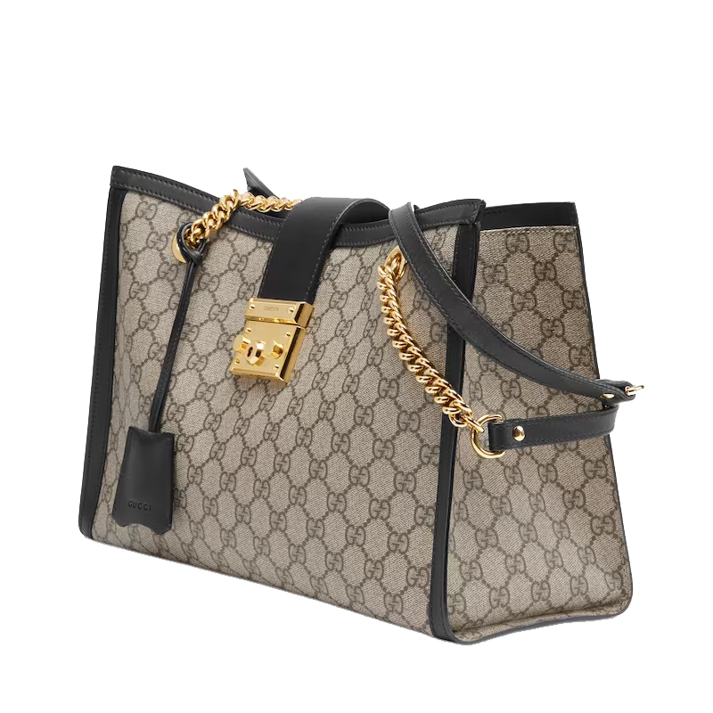 This large tote bag features a key lock closure and chain shoulder straps. Crafted in GG Supreme, it's embellished with details in exceptionally soft leather with a natural sheen.