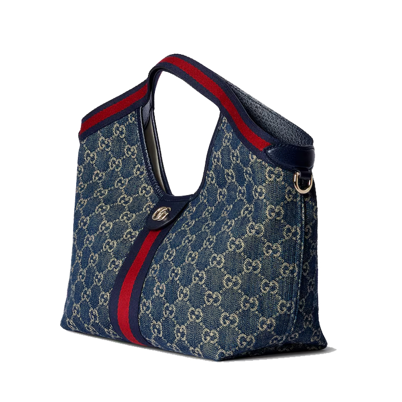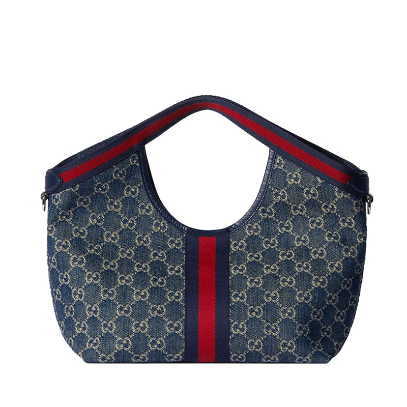 Gucci Giglio introduces a smaller version of its collection. Debuting at the brand's Cruise 2026 fashion show in Florence, this tote pays homage to its Italian roots and embodies a spirit of heritage and innovation. Expertly crafted from GG denim and trimmed with web piping, it comes with a detachable clutch for added style.