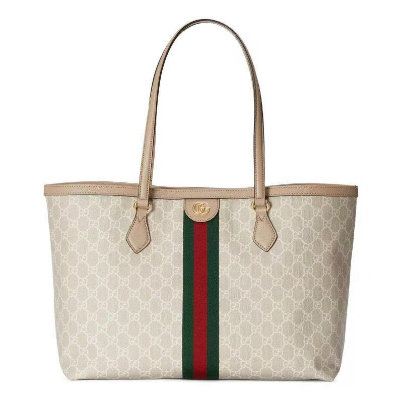 With recognizable design elements in a practical new shape, Ophidia new large sized tote is trimmed with textured leather and topped with Double G hardware. Thanks to its long leather handles, the style can also be carried as a shoulder bag.