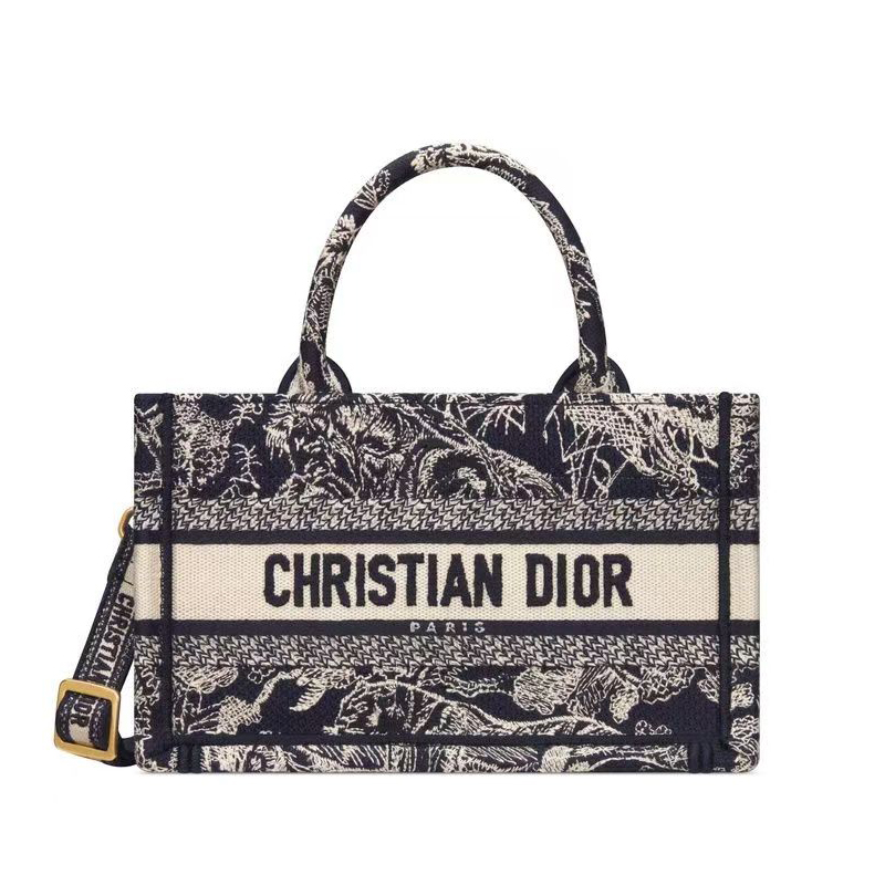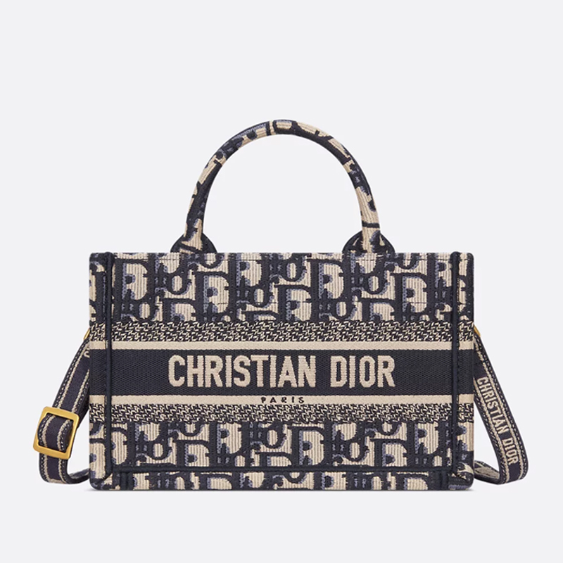 The Dior Book Tote is a classic and original design by Christian Dior Creative Director Maria Grazia Chiuri. It features an all-over embroidery of the House's signature blue Dior Oblique motif and is embellished with the Christian Dior Paris signature. This miniature style showcases the House's exceptional craftsmanship and features an adjustable and removable shoulder strap for carrying by hand, over the shoulder, or across the body.