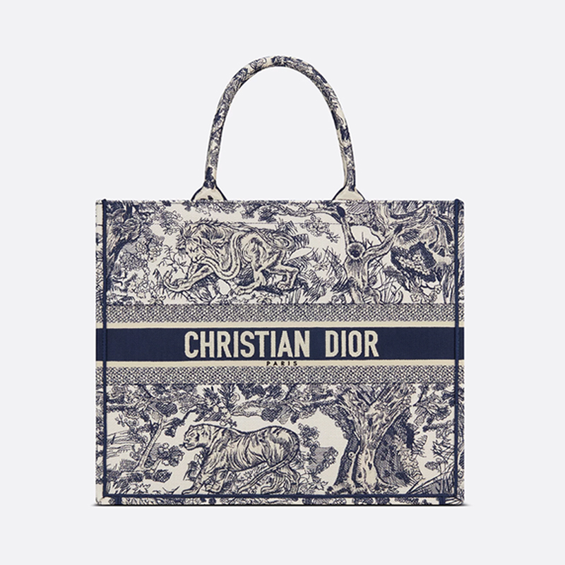 Christian Dior tote bag blue Small Dior Book Tote bags zoo tiger pattern