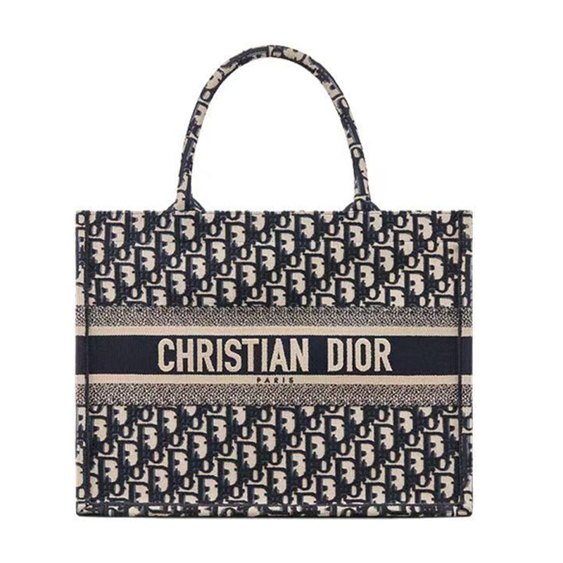(1)The Dior Book Tote, designed by Christian Dior Creative Director Maria Grazia Chiuri, has become a hallmark of the Dior aesthetic. This style, capable of holding all your daily essentials, features an all-over embroidery of the Toile de Jouy Reverse motif in blue and off-white, a variation on the House's iconic pattern, inverting the colors. Emblazoned with the Christian Dior Paris signature on the front, this medium tote bag showcases the House's signature craftsmanship and can be carried by hand or on the shoulder.