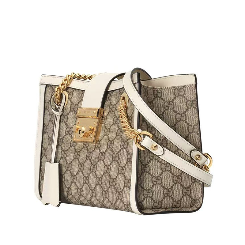 A structured tote bag in GG Supreme with a strap that secures with a key lock closure pulled straight from the archives. The key is placed in a detachable leather key case.