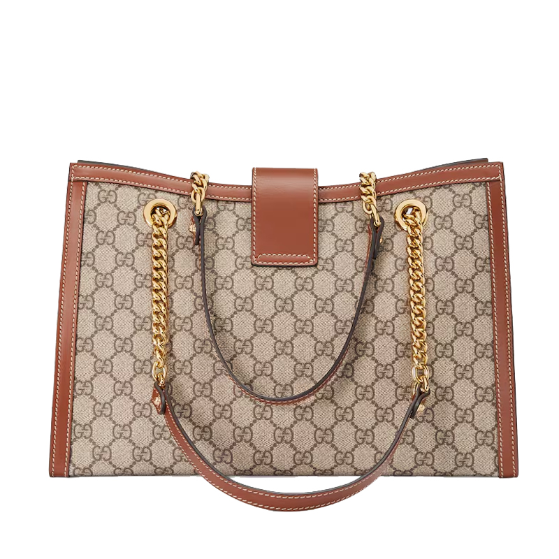 This large tote bag features a key lock closure and chain shoulder straps. Crafted in GG Supreme, it's embellished with details in exceptionally soft leather with a natural sheen.