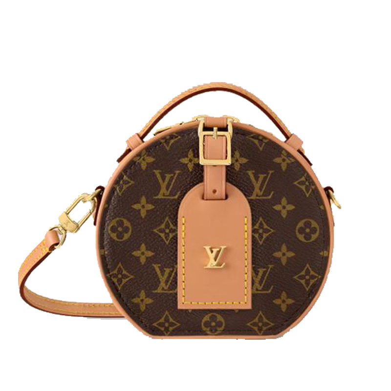 Inspired by Louis Vuitton's travel heritage, the Mini Boîte Chapeau is crafted from Monogram canvas with charming classic details, embellished with a natural leather luggage tag and a Malletage quilted lining, echoing the design of traditional trunks. This mini bag features a large, accordion-style compartment with a zipper, a handle, and a detachable and adjustable shoulder strap for versatile carrying.