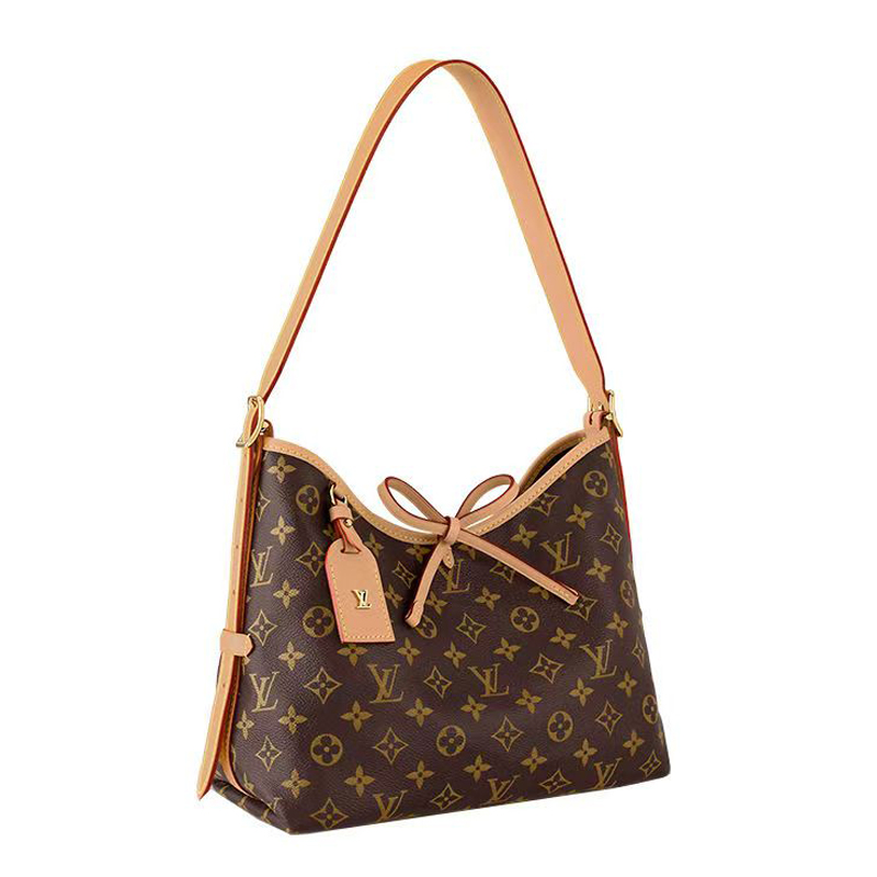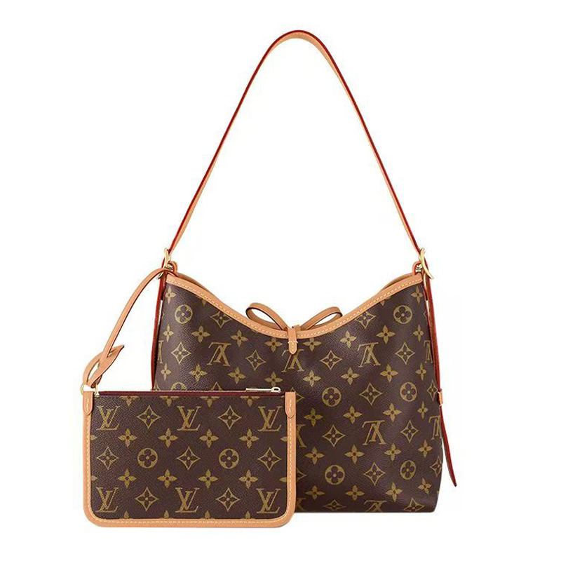 The CarryAll PM bag perfectly blends allure with a tailored design. Crafted from Monogram canvas and trimmed with natural leather, it's a lightweight, easy-to-carry urban bag. Its spacious interior features two small internal patch pockets for added practicality. It also includes a removable Monogram canvas zippered pouch that can be attached to the leather shoulder strap.